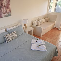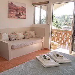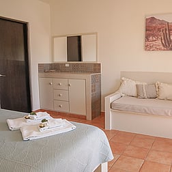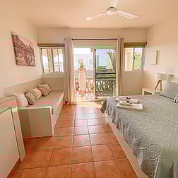Nuestras habitaciones tipo estudio de lujo incluyen una cama king size y un sofá cama si lo desea. Todas las habitaciones cuentan con una cocineta, una estufa y una nevera. En todas las habitaciones hay una unidad de aire acondicionado con control remoto y un ventilador de techo. Disfrute de una vista de la alberca y los jardines que la rodean desde cada habitación.